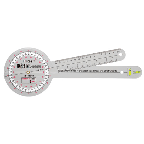 The Baseline® Plastic Absolute+Axis® Goniometer with 360 degree head and 12 inch arms dramatically helps practitioners measure your range of motion in your hip, neck, knees, and more. Once the instrument is level with the axis, you can accurately measure the patients angle.