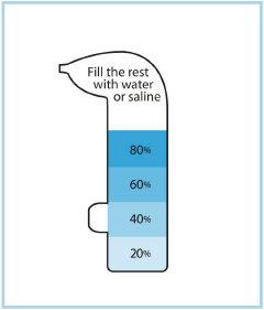 MEDIUM: Add two teaspoons of ALKALOL to the ALKALOL Nasal Wash Cup, filling it approximately 40%, and the balance with saline or warm distilled or sterilized water.