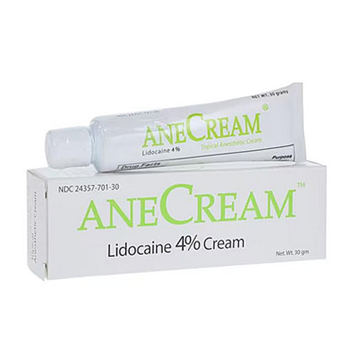Anecream Cream 4% Topical Pain Relief Cream used on the skin to stop itching and pain from certain skin conditions (such as scrapes, minor burns, eczema, insect bites) and to treat minor discomfort and itching caused by hemorrhoids and certain other problems of the genital/anal area (such as anal fissures, itching around the vagina/rectum). Some forms of this medication are also used to decrease discomfort or pain during certain medical procedures/exams (such as sigmoidoscopy, cystoscopy). Lidocaine is a local anesthetic that works by causing temporary numbness/loss of feeling in the skin and mucous membranes.