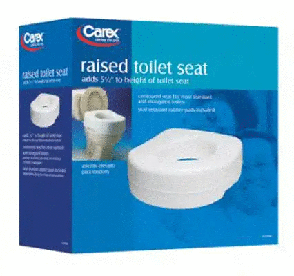 The Carex Raised Toilet Seat is designed to help make standing and sitting at the toilet easier. This toilet seat riser features a wider seating area, a skid-resistant base, and adds 5½ extra inches to your existing toilet seat.