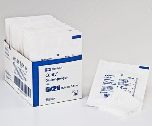 Curity Sterile Gauze Sponges 2s, made by Covidien/Kendall, are available in a variety of sizes and ply thicknesses to suit your patient’s needs. Each gauze sponge is made from cotton grown in the US and will be packaged in envelopes containing 2 gauze sponges each.