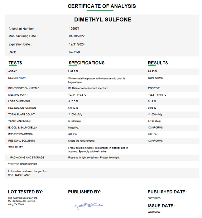 Dimethyl Sulfone USP For Compounding (API)