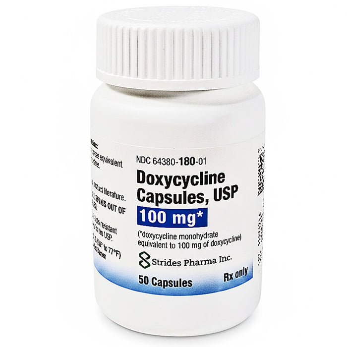 Get clinically-proven, prescription-strength protection against tough bacterial infections with Doxycycline 100 mg Capsules, 50 Count by Strides Pharma (NDC: 6438-00180-01, UPC: 364380180012). Order now for fast, reliable relief and physician-recommended quality!
