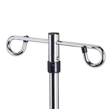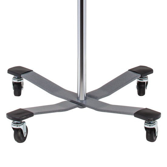 Heavy Base IV Pole with 2-Hooks and chrome-plated steel pole with height adjustable knob. Ram's hook has protective tips on each end and detaches for safe cleaning. Four-leg design features a epoxy coated steel heavy-duty base with bumper guards and easy maneuver's with 2" rubber wheel casters.