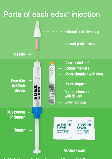 edex® is a penile injection used to treat erectile dysfunction (ED) caused by conditions affecting nerves, blood vessels, emotions, and/or a combination of factors.
