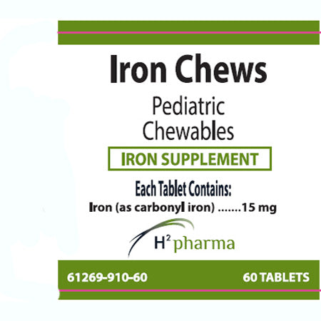 Iron Chews Pediatric Iron Supplement Tablets by H2 Pharma are a convenient and tasty solution for addressing iron deficiency in children. Each chewable tablet delivers 15 mg of elemental iron, specifically formulated to support the unique nutritional needs of growing children and adolescents. Each bottle contains 60 deliciously flavored tablets to make daily supplementation enjoyable and simple for kids and peace-of-mind for parents.