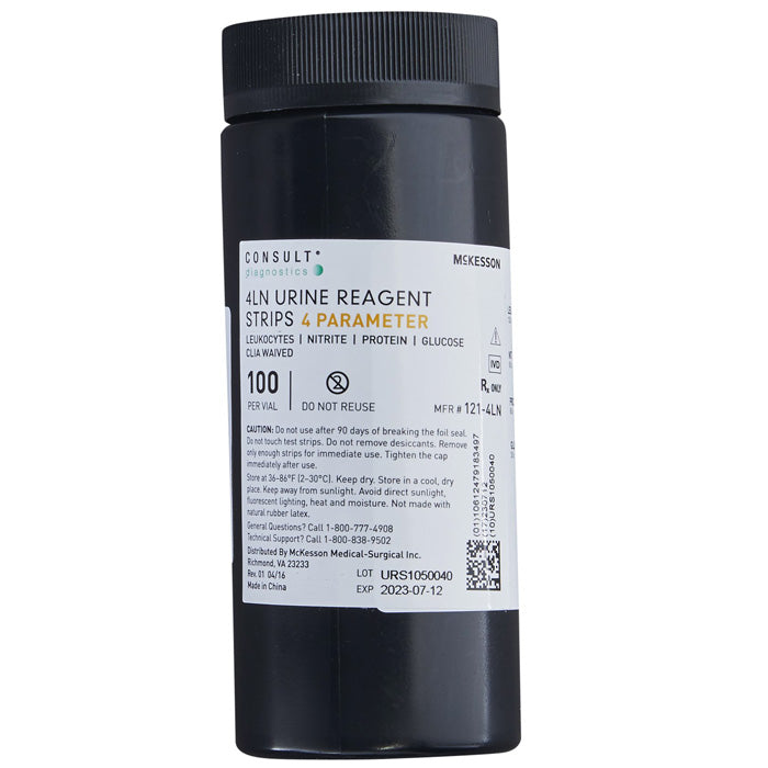 Whether in a clinical setting or at home, McKesson 4 LN Urine Reagent Test Strips deliver fast and reliable urinalysis, empowering healthcare professionals and patients with vital information for informed decision-making regarding health interventions. Evaluate and monitor with assurance using McKesson's trusted technology.