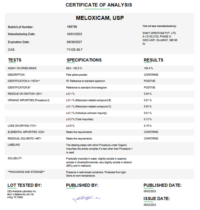 Meloxicam USP For Compounding (API)