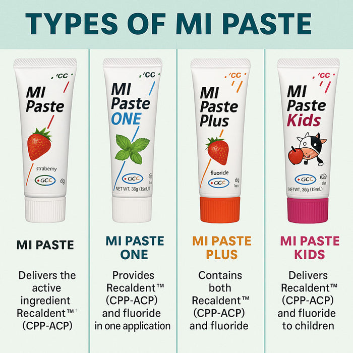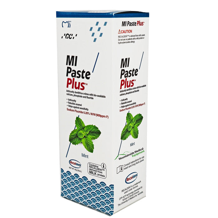 MI Paste Plus with Mint Flavor by GC America is an exceptional dental care solution crafted to elevate your oral health regimen. Infused with advanced RECALDENT™ (CPP-ACP) technology enriched with fluoride, this product is designed to strengthen enamel, combat sensitivity, and leave you with a refreshing burst of mint freshness. Ideal for those seeking enhanced protection against tooth decay and erosion, MI Paste Plus stands as a superior choice for both at-home care and professional dental settings.
