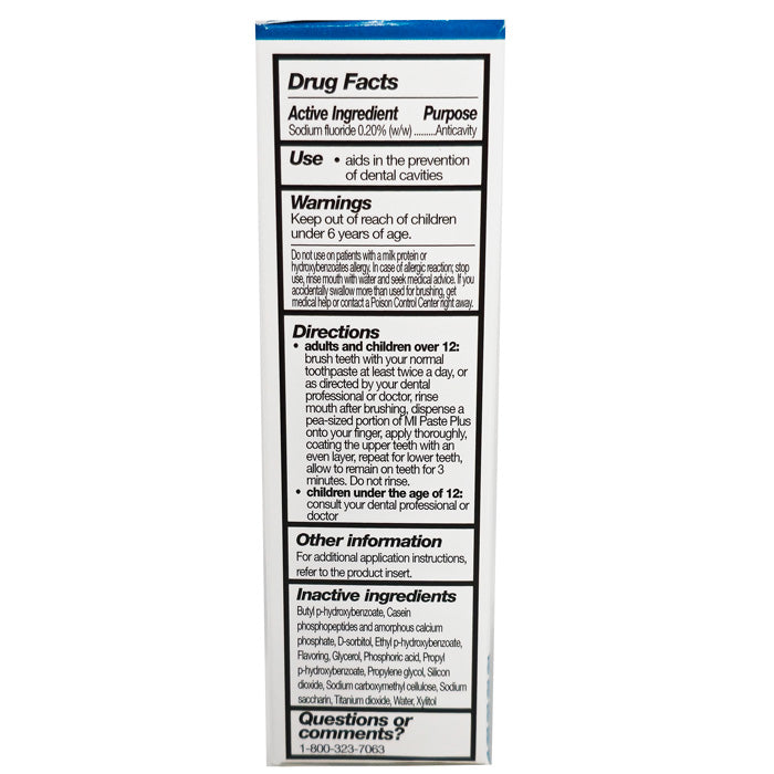 Fluoridated Formula: MI Paste Plus combines the benefits of RECALDENT™ with 0.2% sodium fluoride, providing additional protection against demineralization and cavities.