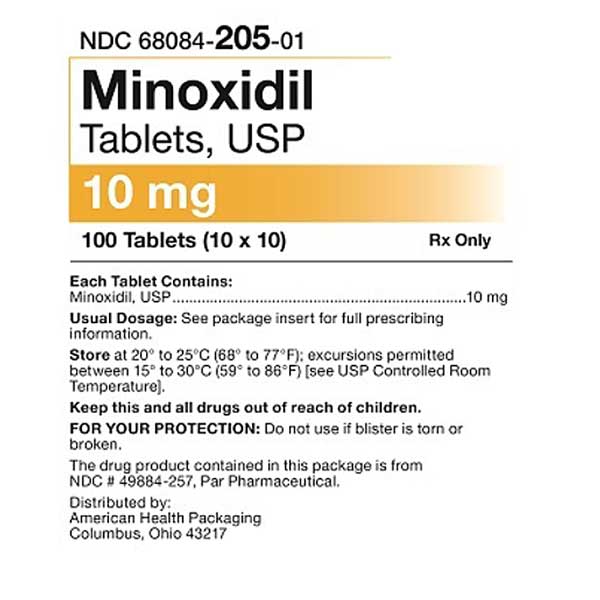 Minoxidil Tablets 10 mg by American Health Packaging provide an effective oral treatment for managing severe hypertension when conventional therapies are inadequate. Each pack contains 10 tablets, with a total of 100 tablets per box, ensuring a consistent and reliable supply for blood pressure management.