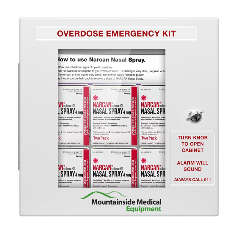 Note: This cabinet comes empty and does not contain Narcan. It is shown with Narcan for display purposes only.