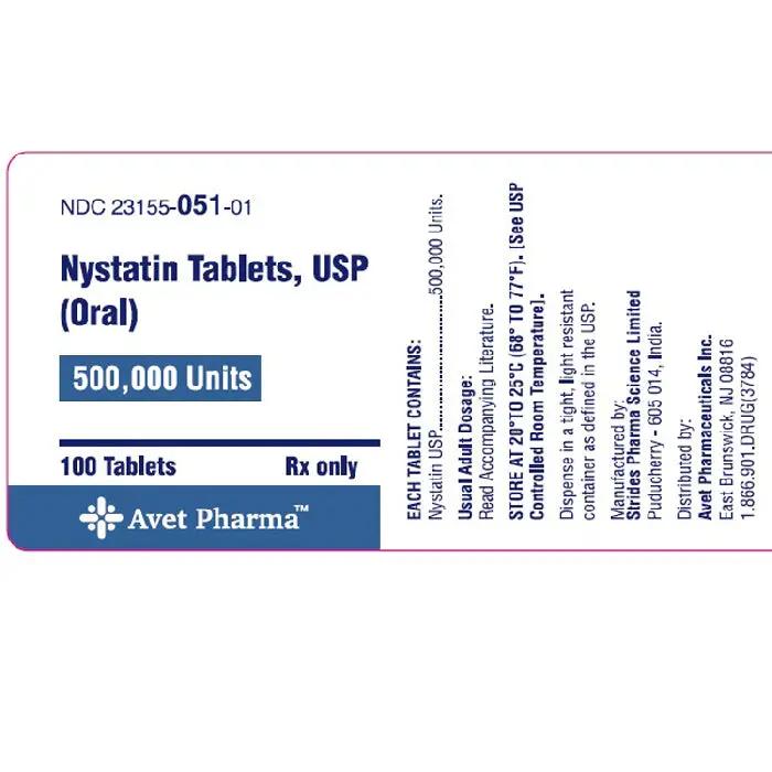 Nystatin Tablets 500000 Units by Avet Pharma 100 Count (Rx)