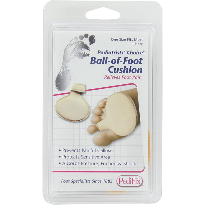 Protects forefoot, helps relieve and prevent pain and calluses. Absorbs shock and reduces friction. Soft, double-layer foam pad stays securely in place with a comfortable toe loop. Hand-sewn nylon cover for extra durability. Great for thin-soled footwear. Interchangeable for right or left foot.
