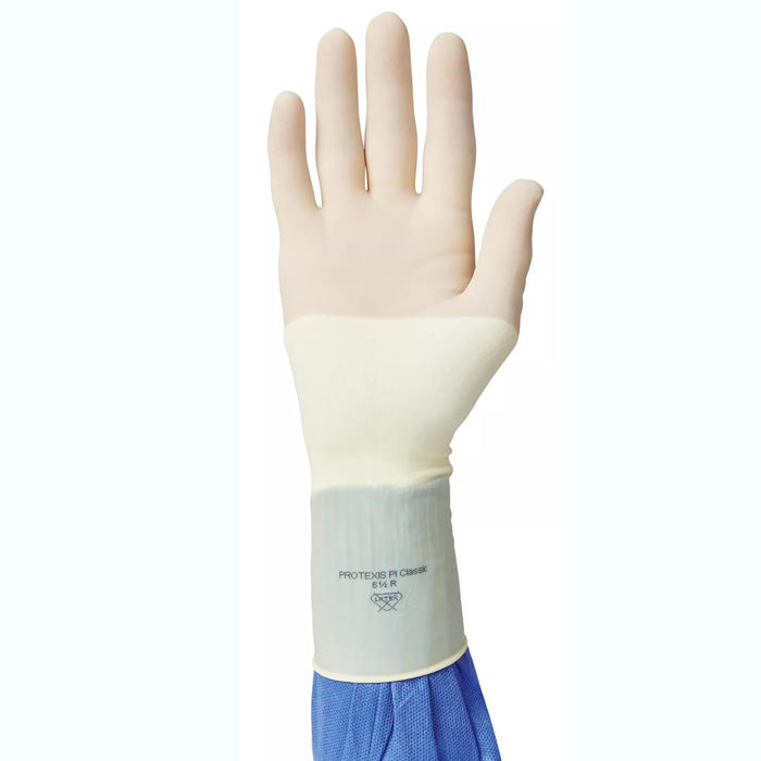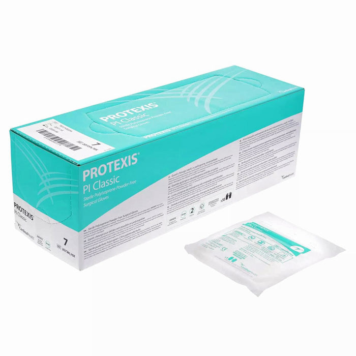 Protexis PI Classic Surgical Gloves are sterile, disposable gloves made from polyisoprene, designed for use in surgical settings. They are known for their sensitivity and comfort, closely mimicking the fit and feel of natural rubber latex gloves, but without the risk of latex allergies. These gloves provide excellent tactile sensitivity, durability, and a reliable barrier against contaminants, helping protect both patients and healthcare professionals during surgical procedures. They are often used for their balance of strength and elasticity, ensuring precision and safety in a variety of medical and surgical applications.