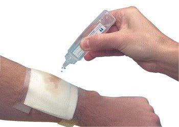 Indications: for use in moistening and lubricating absorbent wound dressings for traumatic wounds, cuts, bruises and minor burns prior to removal from the wound area.
