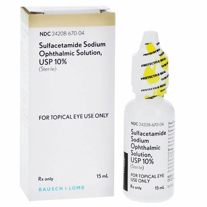 Sulfacetamide Sodium 10% Eye Drop Ophthalmic Solution by Bausch & Lomb is a prescription medication formulated to treat bacterial infections of the eye. By inhibiting the growth of bacteria, these drops are effective in addressing conditions like conjunctivitis and other ocular surface infections. This solution contains a powerful sulfonamide antibiotic that targets harmful bacteria while maintaining the health and clarity of your eyes.
