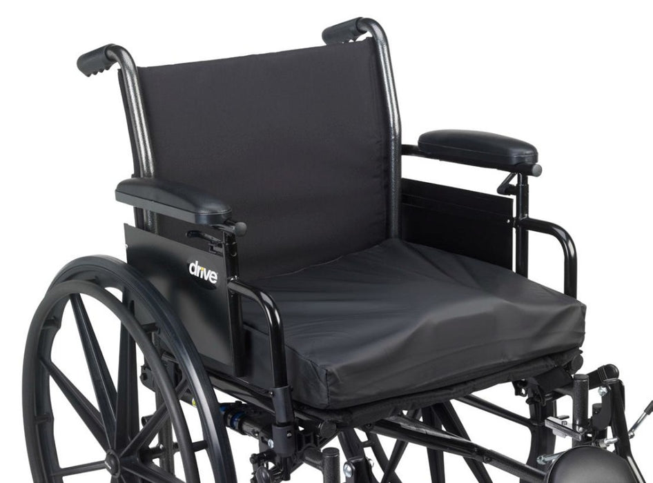 Designed for comfort and positioning, the Titanium Cushion with Visco Elastic Foam and Gel is gentle on the skin and helps redistribute user pressure. The cushion features a dual-chamber gel bladder top layer and a high-resilient, high-density middle layer for comfort and a pommel for leg abduction. Plus, the cover is low-shear and fluid-resistant for safe use and easy care. Non-skid bottom.