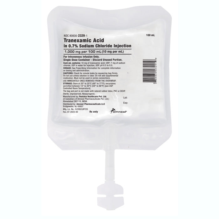 Tranexamic Acid in 0.7% Sodium Chloride IV Bags by Amneal Pharmaceuticals provides reliable support for managing bleeding effectively. Adhere to healthcare professional instructions for safe and successful administration.