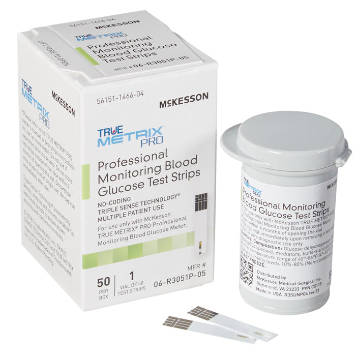 Trust McKesson True Metrix Pro Blood Glucose Test Strips for fast, accurate, and easy diabetes monitoring. Depend on professional-grade technology for total confidence in your glucose readings—order your 50-count box today!