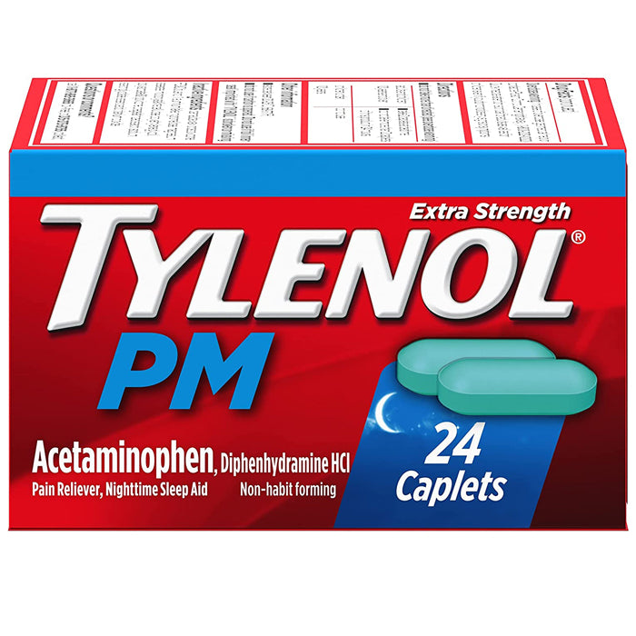 Tylenol PM Extra Strength Nighttime Pain Reliever and Sleep Aid Caplets help relieve minor aches and pains and help you fall asleep fast for a more restful sleep. This nighttime pain relief medicine provides 500 mg of acetaminophen and 25 mg of diphenhydramine hydrochloride in each caplet. Both a pain reliever and non-habit forming sleep aid, it is formulated to help you fall asleep and stay asleep while also relieving headaches and minor aches and pain. From Tylenol, the #1 doctor-recommended brand for pain relief and fever reduction, it can be used by adults and children 12 years and older, and is nonhabit forming when used as directed.