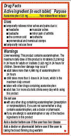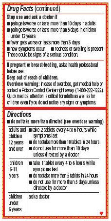 Directions: Adults and children 12 years and older, take 2 tablets every 4-6 hours as needed not to exceed 10 tablets in 24 hours. Children 6-11 years take 1 tablet every 4-6 hours as needed not to exceed 5 tablets in 24 hours