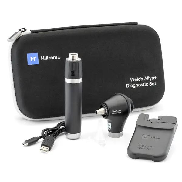 Welch Allyn 3.5V Diagnostic Set with MacroView Plus LED Otoscope for iExaminer, one Premium Lithium Ion Plus USB Rechargeable Power Handle, and Hard Case.