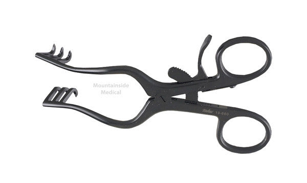 Wullstein Endaural Retractor 5" (12.7 cm) with 3 x 3 sharp teeth with a non-glare ebony finish